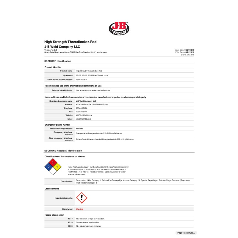 J-B Weld Perma-Lock High Strength Threadlocker delivers a reliable and superior lock for threaded fasteners, ideal for heavy-duty applications requiring resistance to shock and vibration. It's perfect for all mechanical parts, body assemblies, and hundreds of other applications where preventing loosening is critical. Note: Heating and hand tools are required to separate parts.